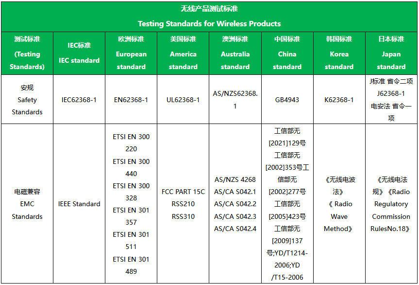二、無線充電器產(chǎn)品全球認(rèn)證檢測服務(wù)(列舉部分):